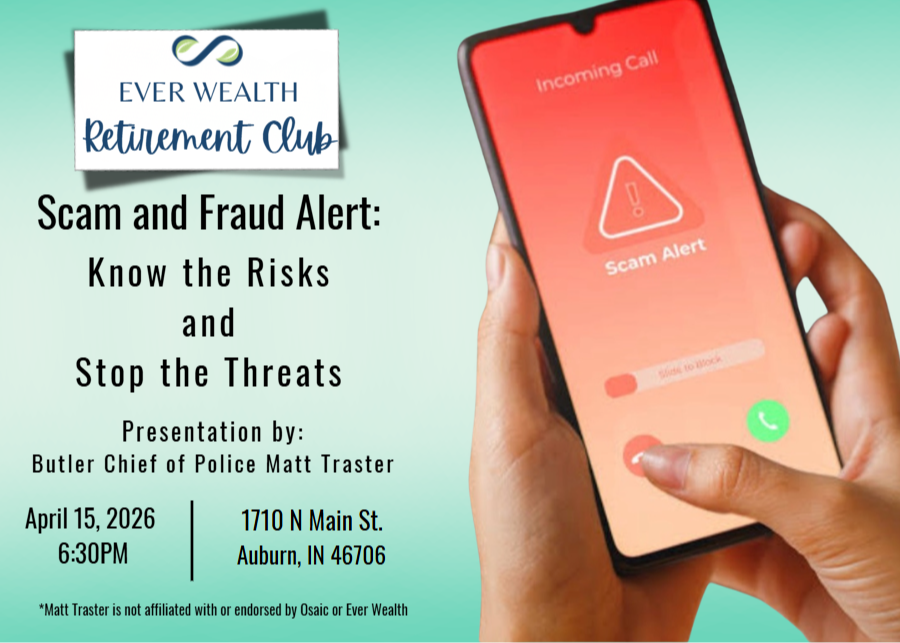 Join us for our upcoming Retirement Club event at Ever Wealth. We’re pleased to welcome a special guest speaker who will be sharing helpful information on scams and fraud.